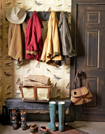 Не забывайте и про разные , способные придать интерьеру дополнительного шарма. Украсьте прихожую небольшими картинами с сельскими пейзажами, рамы - обязательно из дерева. Расставьте глиняные горшочки с живыми цветами, подсвечники, красивые вазы.