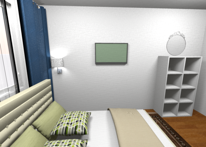 да, хочется моря и спокойствия.)все эти причины/ доводы пускай расматривает заказчик.тв на откидном кронштейне. такое расположение кровати придает комнате простора и воздуха.да и кровать поставить по другому недолго)