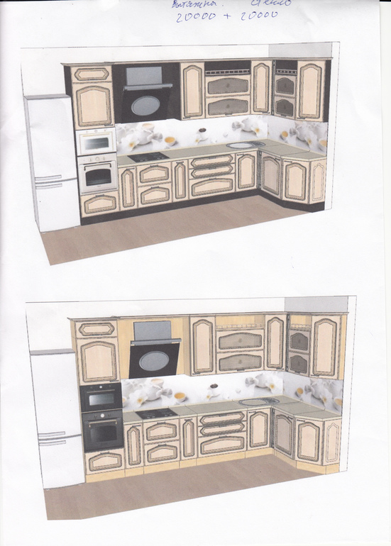 С покупкой и заказом кухни сталкиваюсь впервые, так что милые жду от Вас критики, рекомендаций, советов... Выкладываю проект нашей будущей кухни, но это можно сказать не окончательный вариант. Сразу скажу, холодильник черный, фартук темное стекло, справа от раковины посудомоечная машина 90см. Вытяжку хочу именно такую, а не классическую.