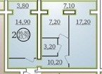 Я бы предложила:* 14,90 сделать кухней-гостиной* 17,20 сделать спальней с хорошей гардеробной* 7,20 сделать будущей детской* вход в СУ сделать с другой стороныБольшую часть времени семья проводит в кухне-гостиной, это шумное помещение, которое должно быть по максимуму изолировано от всех частных зон. У Вас есть отличная возможность отделить дверью всю эту шумную зону и изолировать частную. Пока ребёнок маленький Вам нужна хорошая большая спальня, а когда ребёнок подрастёт его можно поселить в отдельной небольшой комнате. С учётом площади лоджии комната будет вмещать необходимый для ребёнка минимум. При этом если в семье появится ещё один ребёнок, спальня продолжит оставаться хорошей и просторной комнатой.