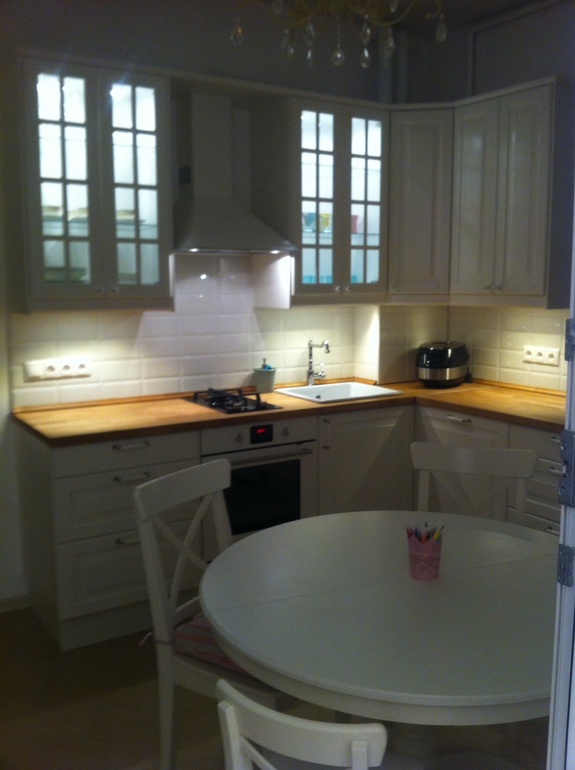 Кухня аккуратненькая такая, просто прелесть!А у Вас какая подсветка рабочей зоны? икеевская? света хватает?