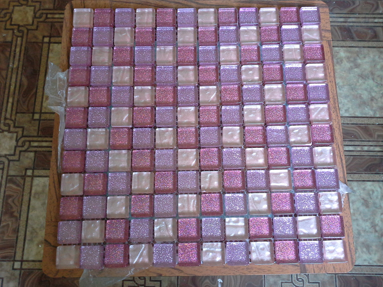 сфоткаю. А затирку брали дорогую эпоксидную + блески, т.к. цементная очень просто смотрелась и по цвету была далеко.Только мозаику ставьте там, где не летит жир, а то замучиетесь чистить.Мы на кухне сделали стеклянный фартук с фотопечатью, мегадовольны :)