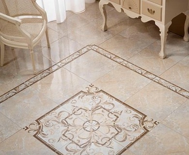 Кухня совмещенная с гостиной (золотистые обои). Пол будет вот такой: