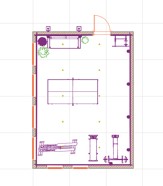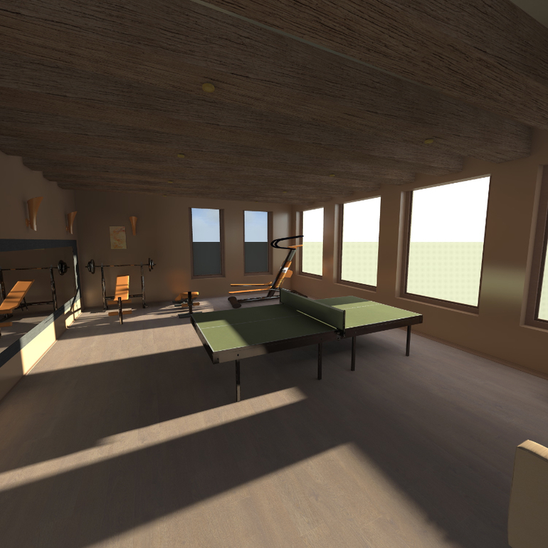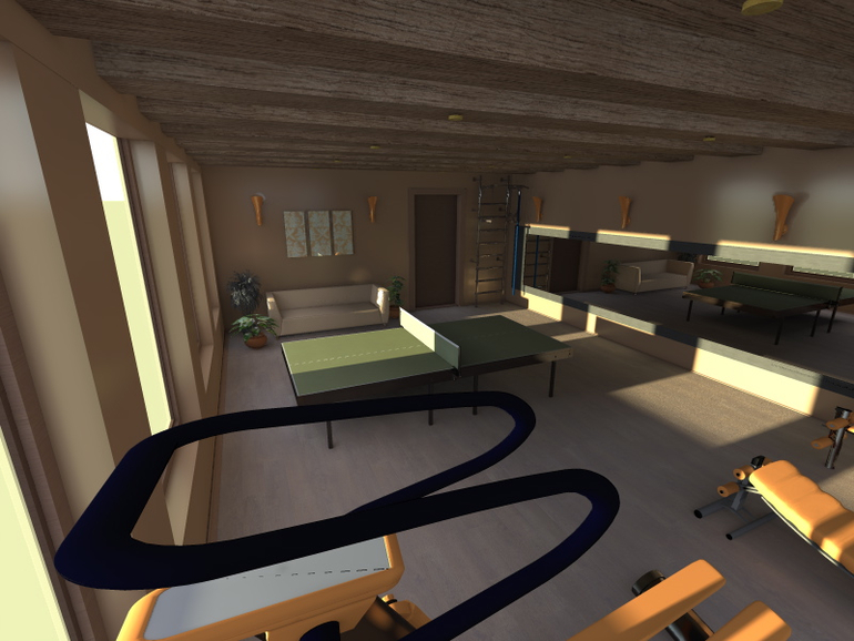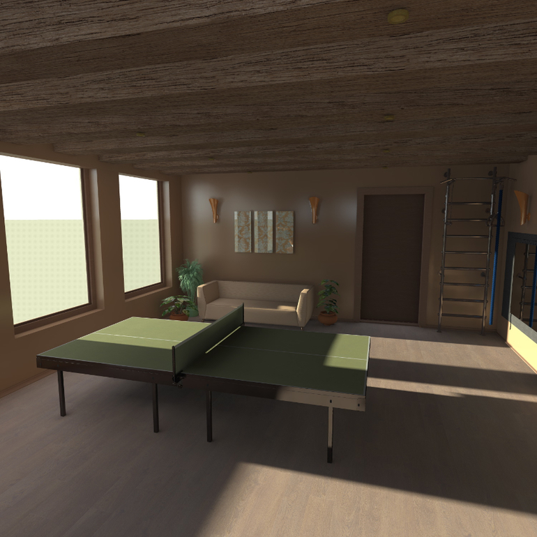 небольшой спортзал -желание мужа. У нас есть тренажер, который стоит в гостиной, но ему неудобно там заниматься, еще желание мужа это стол для настольного тениса)