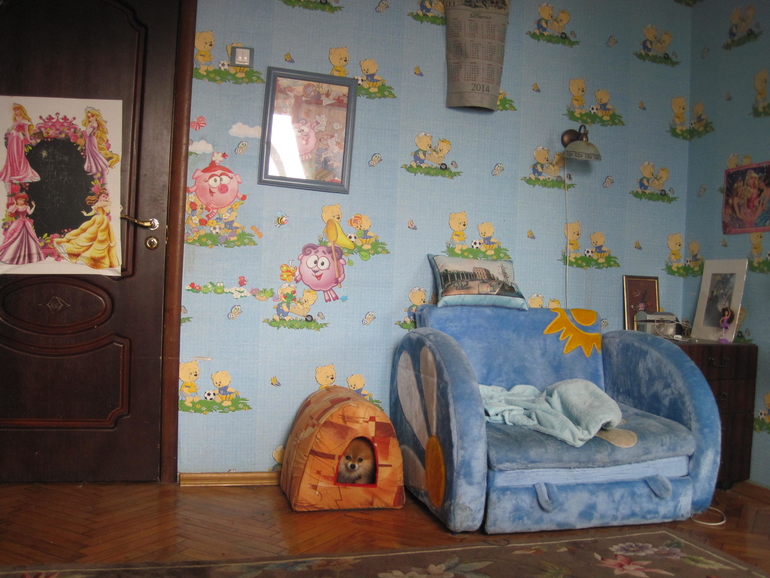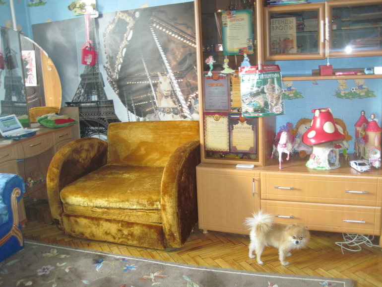 я понимаю, что у вас там свой быт и свое видение мира, но как можно пользоваться зеркалом (то есть трюмо), если оно закрыто креслом?! (которое рыжее). Чтобы открыть дверцу — надо кресло отодвинуть?Ну и чудно так — смешарики в красивой рамке, а грамоты — натыканы в стенку. И зачем такое количество кресел одной девочке? В этом есть смысл?