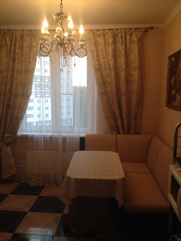 Кухонный гарнитур очень красивый! А вот клеенку на столе и картину в топку!