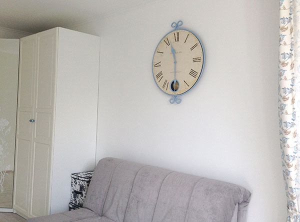 Интерьерные штучки.Ура-ура! Наконец-то я обзавелась большими часами, как и хотела. Правда, теперь мучаюсь: стена даже с ними кажется пустоватой. Хотела фоторамки повесить, но мне кажется, это будет что-то не то... Очень жду ваших советов!