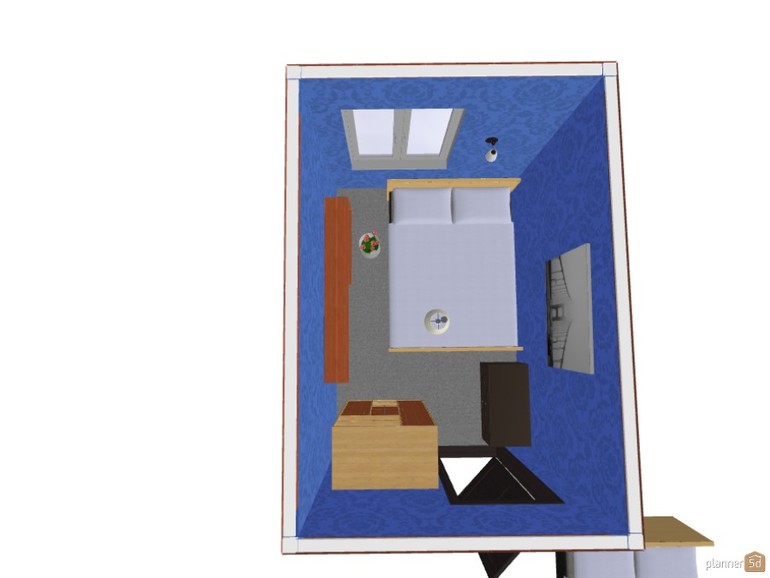 Интерьерное решение спальниДевочки помогите пожалуйста! Решили мы с мужем деткам отдать спальню побольше , а самим переехать в меньшую. Она у нас к слову всего лишь 7 кв.м.(2.20*3.20). И вот со всей имеющейся мебелью(кровать 190*150, комод 46*90,шкаф 53*90) нам надо как-то там разместиться! Мебель вся белая,тюль голубая,шторы синие. Помогите решить насчет цветовой гаммы и конечно же самое главное по планировке!!!!!!!! Моя идея под катом