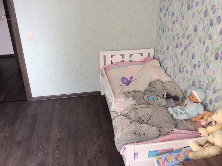 Вот неделю только спит) дочке 4!!! Я бы раньше конечно переложила, но новую кровать ставить некуда было пока ремонт не сделали)