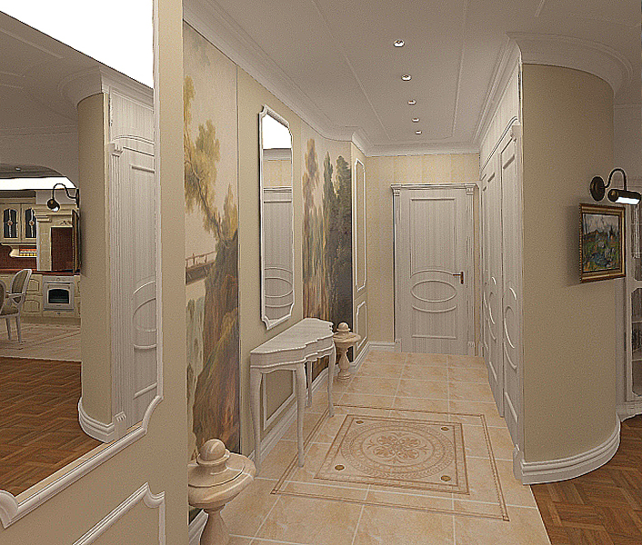Интерьерное решение прихожих, коридорчиковна первом этаже,для верхней одежды и сумок.На против на стене будет зеркало,примерно так