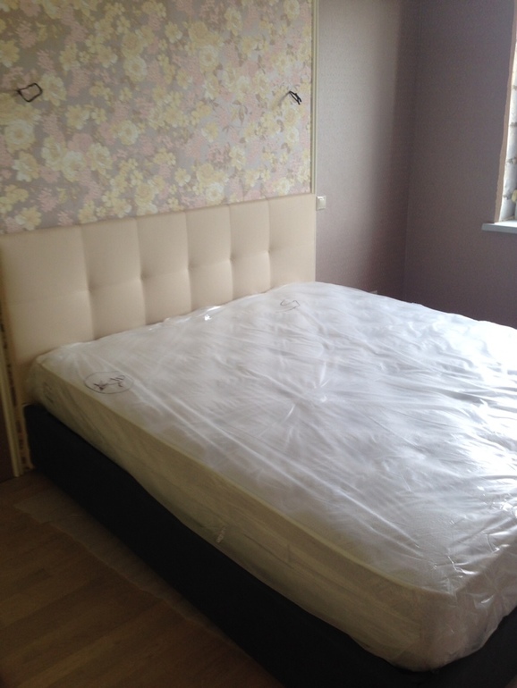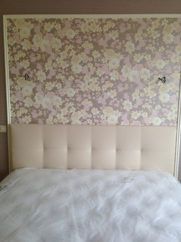 покажу шкаф в интерьере, который делала с такой же кроватью как у Вас, только в белом цвете. Тут он корпусный распашной на заказ. Глянец, двери с полосами фрезеровки. Нижний цоколь будет закрыт. В Вашем случае, мне кажется, обои несколько другое направление задали, поэтому предлагаю матовый под дверь. Но без активных классических элементов. Найду если — брошу пример, где-то была картинка.