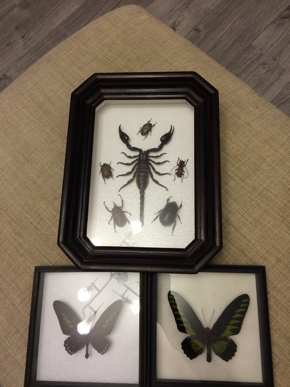 Интерьерные штучки.Продам коллекцию из трех насекомых , две бабочки и скорпион , покупала три года назад всю коллекцию за 7500, сейчас продам 3000 торг уместен, может кто заинтересуется моим предложением ) может кто собирает насекомых как когда то я)) буду рада и обмену на что нибудь)