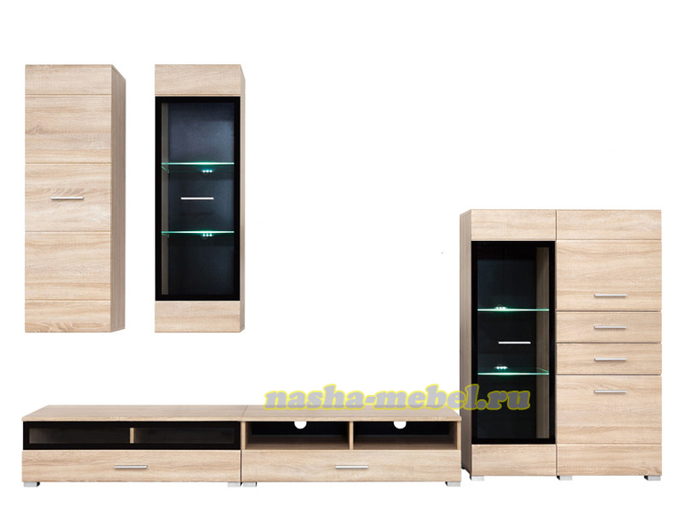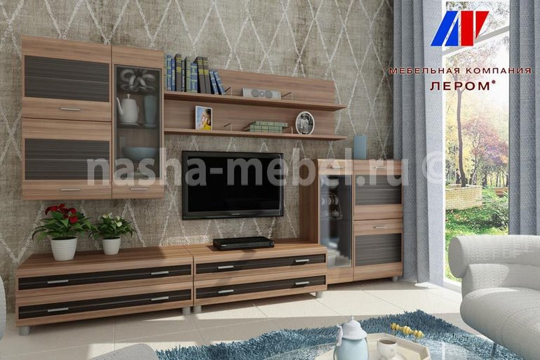 У нас комната 17 метров, вот наша стенка. Только ящик с высокого комода переедет под потолок, а еще вместе с ним 2 такие же только светлые полки закрытые..... Телевизор будем вешать на полках не удобно.