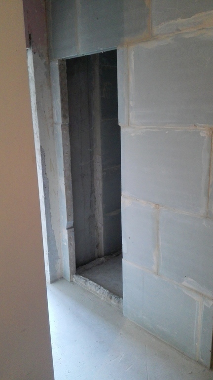 проёмы под двери в СУ оставили пока узкими - решили определиться с раковиной, стиральной машиной, и перенести дверь в ванную комнату в нужную сторону (обрезать блоки).