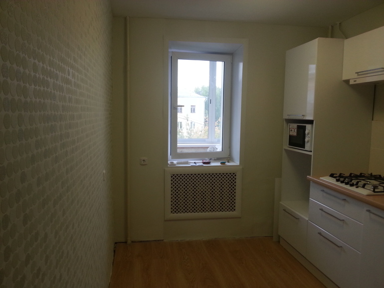 Спасибо) 7,7 метров, 3 на 2.50. Без колонки у нас, а в пенал трубы убраны и газовый счетчик.