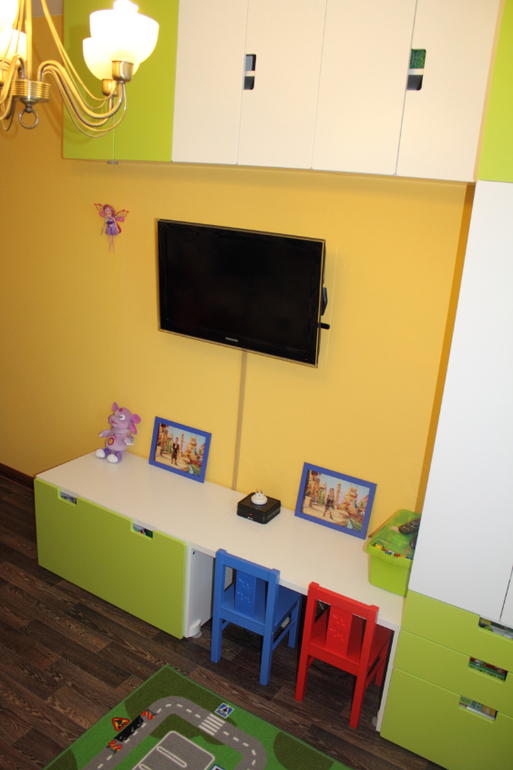 Может очень ярко и может многие (и наверно я в том числе) не решаться на такое буйство красок, но у вас получилось все прекрасно. Редкий интерьер, когда от комнаты веет ТЕПЛОМ. Сразу видно что комната сделана с душой, заботой и любовью к деткам. Вы-молодец.
