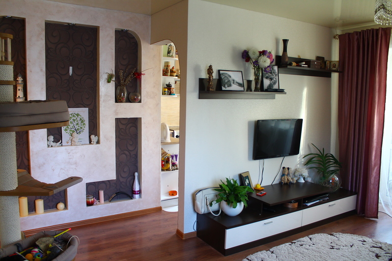 Квартирку мы делали своими силами, процесс занял достаточно много времени - 2 года, прошло с момента как мы только заехали в нее, до полного заполнения мебелью и домашностью ))