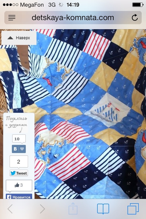 Надо в магазинах тканей для пэчворка поискать. Конечно, эти тканюшки 2012 года, так что может их уже трудно найти, но можно ведь и другие в морской тематике. Я заказывала из США с сайта фабрикшок. Вот еще российский магазин, но там я пока только присматриваюсь)