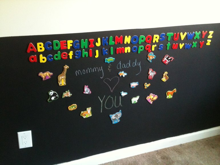 А еще хотите фишек? Под маркерную или грифельную краску можно нанести магнитный грунт, чтобы сделать сразу магнитно-грифельную или магнитно-маркерную поверхность.