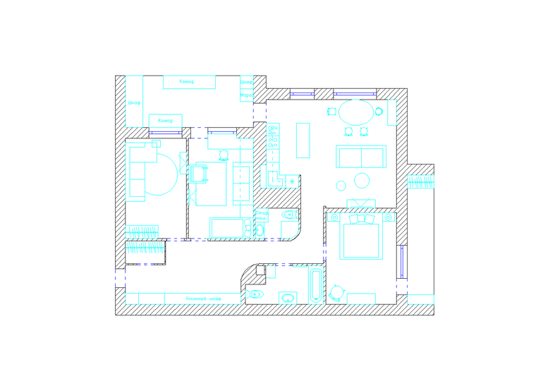 Цель была, создать комфортное жилье для родителей и сына-дошкольника. Плюс дополнительная комната для бабушки, которая частенько наведывается в гости.