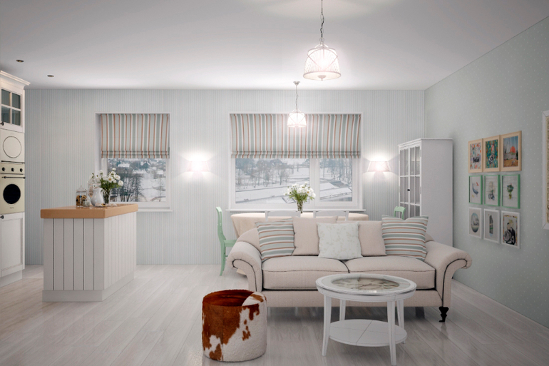 Стиль - современный прованс, я его обозвала так как в заголовке - городской прованс, потому что сельские мотивы тут очень сглажены.