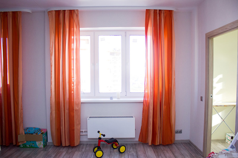 Декор окон. Текстиль. Жалюзи.За окном стало темнеть рано и пришлось бежать покупать шторы) Выбрали в Леруа очень бюждетные (670 р. за одну шторину) уже готовые оранжевые полосочки. Мне хочется в будущем, конечно, сшить на заказ более плотные и совсем однотонные шторы, но пока эти нас будут радовать своим позитивным цветом и светом (который получается в комнате).