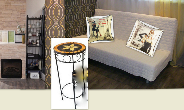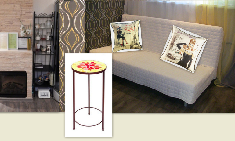 Покрывало на диване сейчас серое, стены серые, пол серый....хочу добавить цветовых солнечных пятен. Заказала две диванные подушки в стиле Париж.