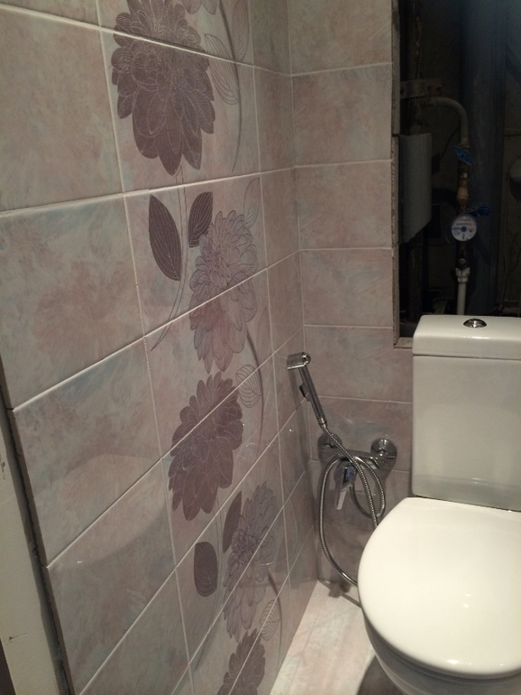 Как видите, еще нет дверей, в туалете поставили рольставню, но не хватило духу выложить, получился кошмар, с щелями, муж купит уголок пластиковый, потом покажу. В ванную не куплены еще полочки для шампуня, точечные светильники то и дело перегорают, напартачил мастер. Муж уже много чего переделал за ним. В туалете плитка керама тоже, выбирали наспех, не было той коллекц , которую хотела, пришлось еще 5 выбирать и всех не оказалось. Выбрала из того, что было.... Не скажу, что в восторге, ну чего уж теперь. Шланг длинный от гигиенического душа, надо тоже менять. Спасибо, что посмотрели.