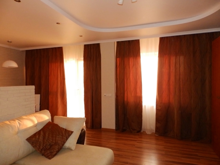 хочешь испортить вид — повесь коричневые шторы))))) те, что с подкладом еще ничего, не так уныло