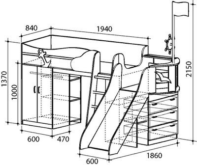 Детский комплекс старшего. Расположение как на цветном фото, чертеж для понятия его размеров