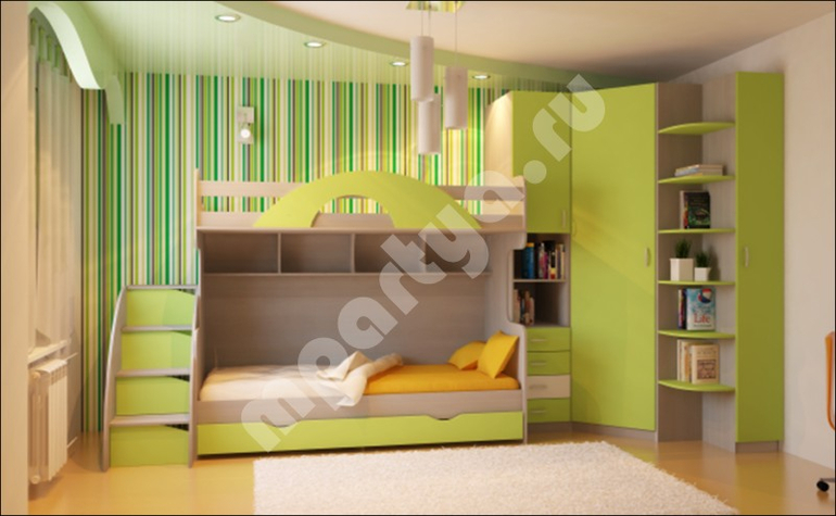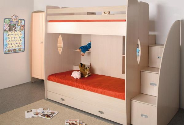 Загляните ко мне страничку, у меня там есть видео с последней кроватью из Ваших фото.Мы очень довольны! Пока что у нас только одна дочка и нижняя кровать используется как диван, но уверена, что это просто отличное решение и для двоих деток, если место не очень то позволяет разместить две кровати в комнате, чтобы еще и место для игр осталось!