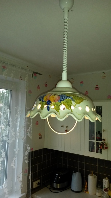 Девочки все правильно написали ниже.Кухня красивая у вас, а занавеска с люстрой сооовсем из другой оперы...