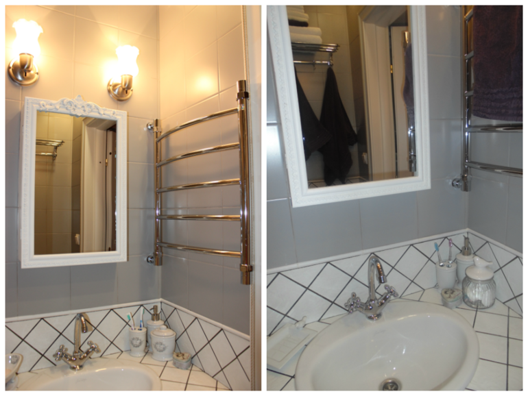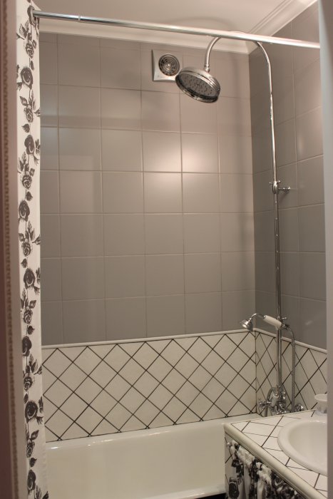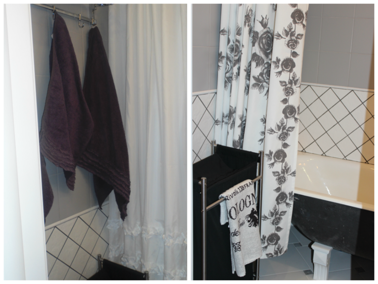 не поняла — а из чего у вас сшиты шторки для ванной и под раковину? из обычного текстиля? или где-то продается непромокаемая ткань? расскажите пожалуйстастиль вашей ванной очень нравитсяудивлена почему вы не выдержали его до конца в туалете? (по мне так не оч удачно вышло с обоями со стульчиками — я бы лучше верхнюю часть выложила тоже этим "клетчатым" кафелем как в ванной (тот который с черной разлиновкой)или обои взяла черно-белые... или вообще на белом фоне сама нарисовала что-то черно-белое...возможно даже виды Парижа