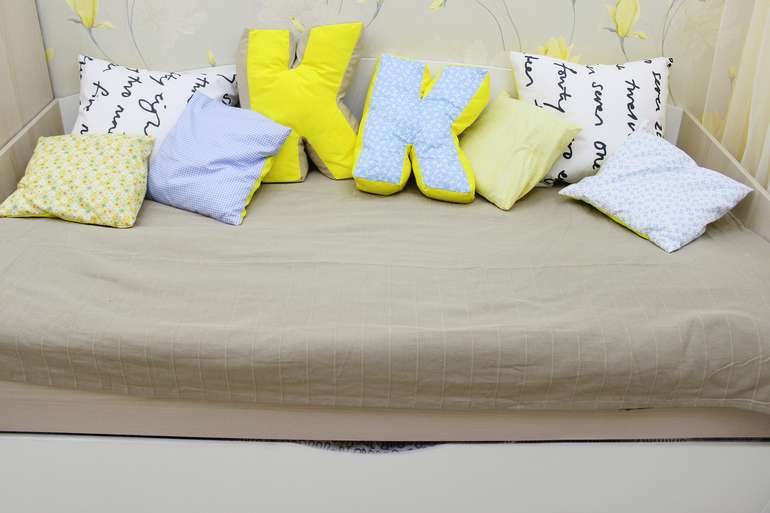 Подушки эти купила/распорола / дабы набить ими сшитые подушки буквы)