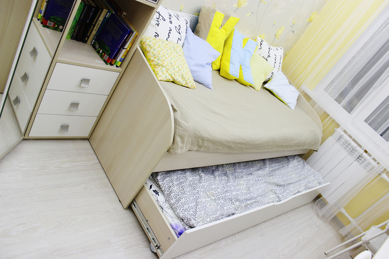Задача: сделать комнату светлее, уютнее, разместить двоих детей так, чтобы осталось максимум пространства из минимума возможных :(