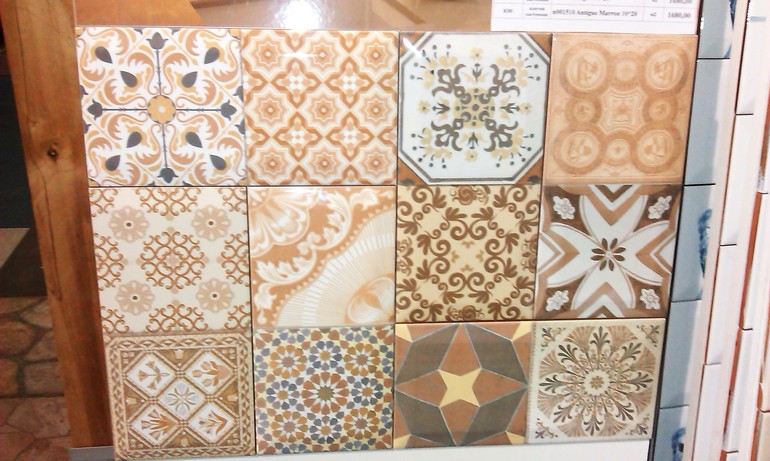 Разноцветная плитка в сочетании с однотонным бежевым кабанчиком.
