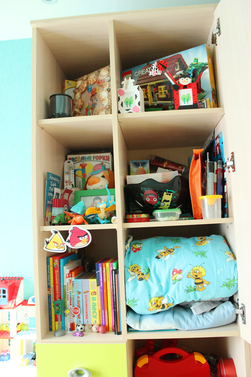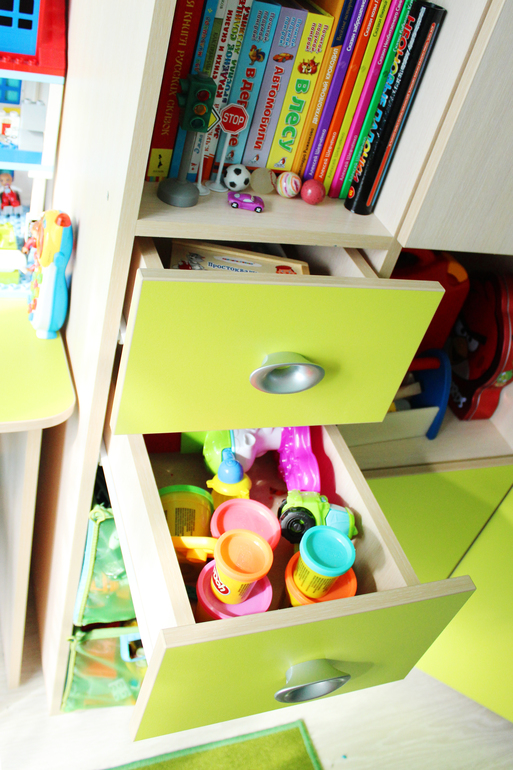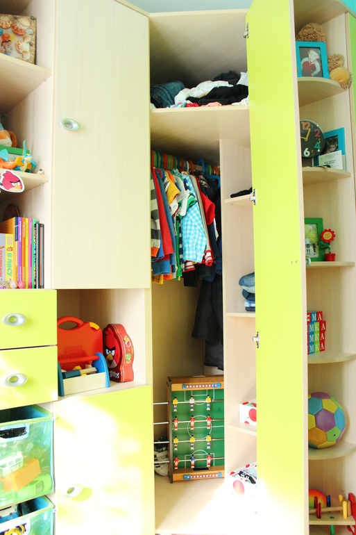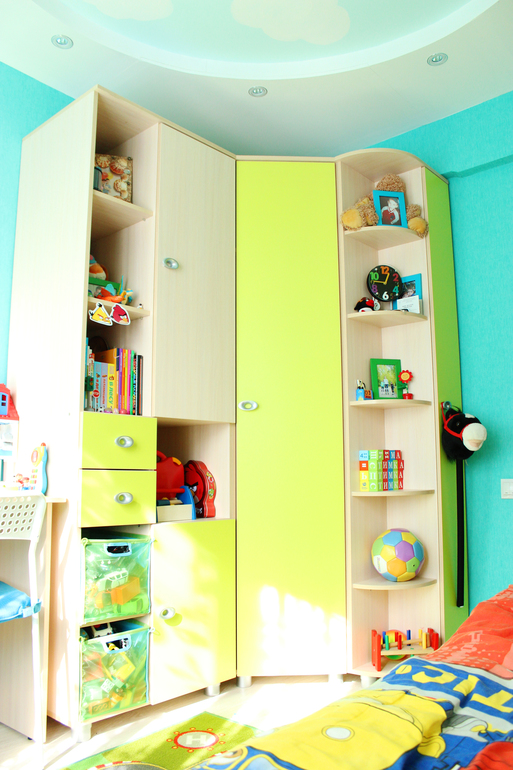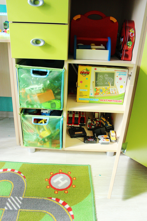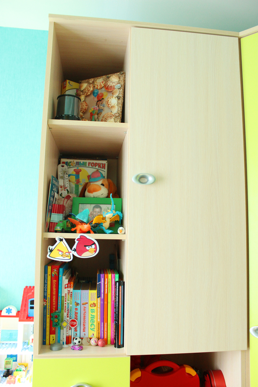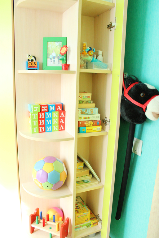 угловой шкаф выбран не случайно, просто он оч.вместительный, а занимает относительно мало места и к нему удачно выбрала по размерам пристроенные шкафчики для наших мешков игрушек и прочего барахла :)