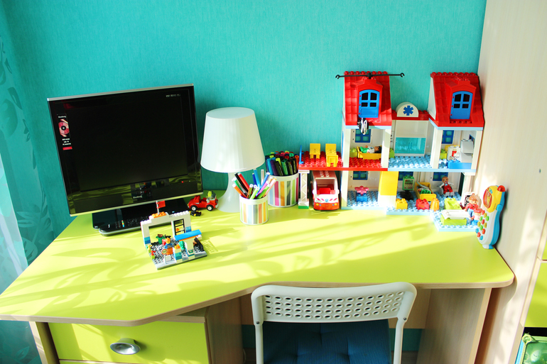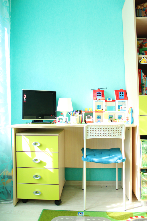 Ремонт у сына делался год назад, на стену над столом думала привесить телевизор, бененький в идеале какой-нибудь, потом передумала, поразмыслив, что к школе на эту стену надо бы шкафчик навесной для книг и доску на стену надо столом для записей (как у дочек по той же схеме) поэтому телевизор на свободный кронштейн сбоку рядом со шторкой присабачить...в любом случае пока он так и стоит на столе себе, смотрят его ессно с кровати (для особо заботливых читателей предвидя вопрос ;)