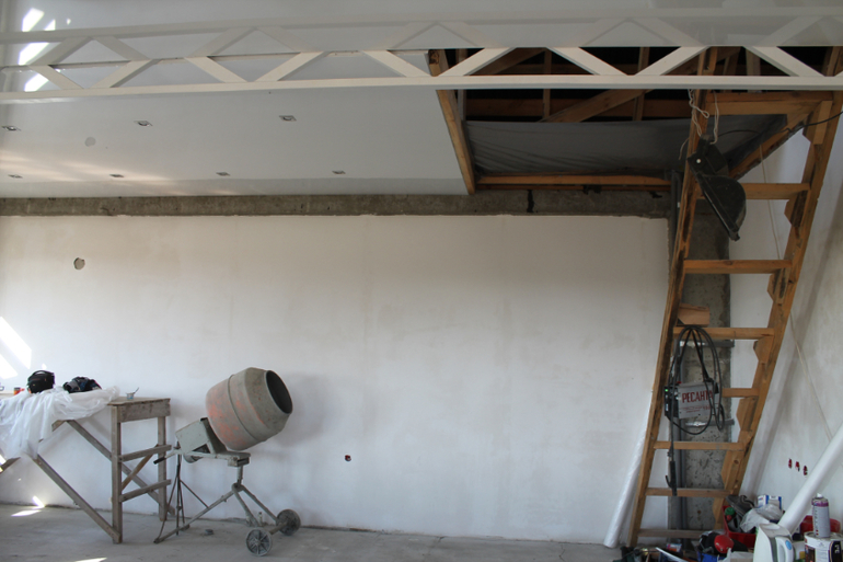 Только не вагонкой!!!!!! Будет ужас ужасный .. можно кирпичиком, но я бы просто покрасила белой краской .. очень понравились Ваши балки металлические )