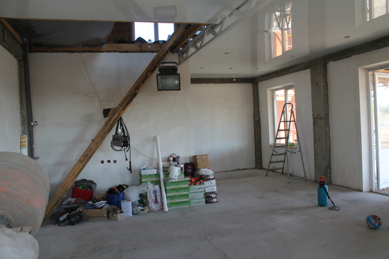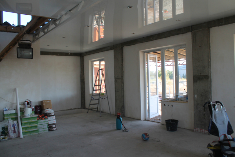 Всё о полах , стенах, потолках и материалах для нихДобрый день! Решила обратиться к Вам за помощью в выборе способа оформления выступов в нашем доме. Имеется дом в котором совмещенная кухня-гостинная-прихожая. По всему периметру под потолком и на стенах из бетона сделан пояс, т.к. дом собирали из панелей и для того что бы их закрепить между ними проливали бетоном. Уже сделали нятяжные потолки. Получилось вот что