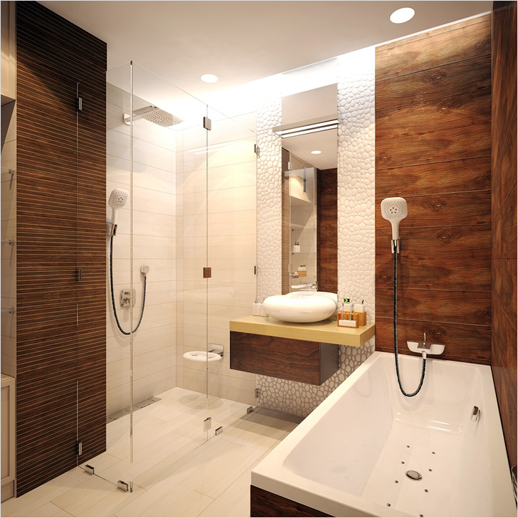 Очень люблю встроенные души, чтобы по стенке шланги от душа не болтались.