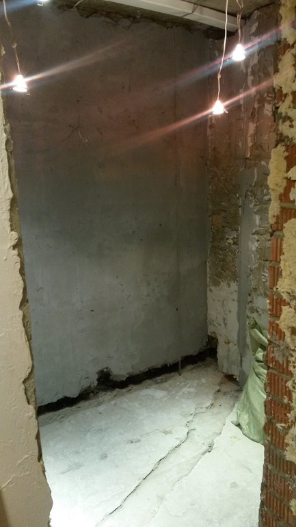 А, еще параллельно с ремонтом с/у перекладывали трубы отопления, они у нас в полу и прошлую зиму мы прожили без отопления, т.к. в начале отопительного сезона у нас из пола начали бить фонтаны кипятка!!! Штроба на полу как раз под трубы отопления.