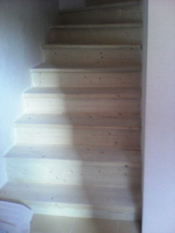 Мама миа! Я тоже хотела полачить на даче лестницу, но мастера, которые ее сделали, отговорили. Сами все с помощью компрессора в несколько слоев полачили яхтным лаком, его еще называют палубный или корабельный. А согласилась я с ними, потому что когда-то так же испоганила деревянные двери, пришлось потом много-много слоев наносить, чтобы просто темные были, без проплешин.  Получились как бы слегка блестящие, дерева совсем не видно. У меня даже фоток с этими дверями вообще нет, так они не к душе. Нашла кусочек косяка для примераc0c87c144c9f6ec441a2afac4c667c4d.jpgИсправить наверное у вас не получится. Или уж совсем темную лестницу, как я двери, сделать, но слоев много нужно. Ну, или как ниже говорили, ковролин.