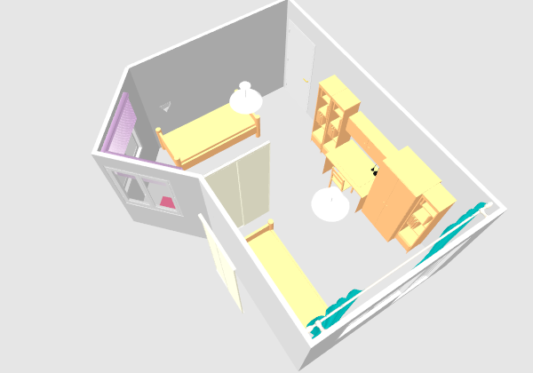 посмотрите у меня в дневнике, должна быть детская. Точно такая же планировка. И расстановка как 1 вариант. сейчас некогда искать фотки и визуализацию. Мы будем ставить стеллаж перед кроватью, пока живем без него.