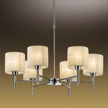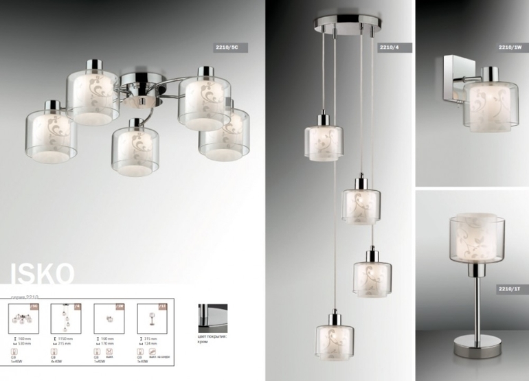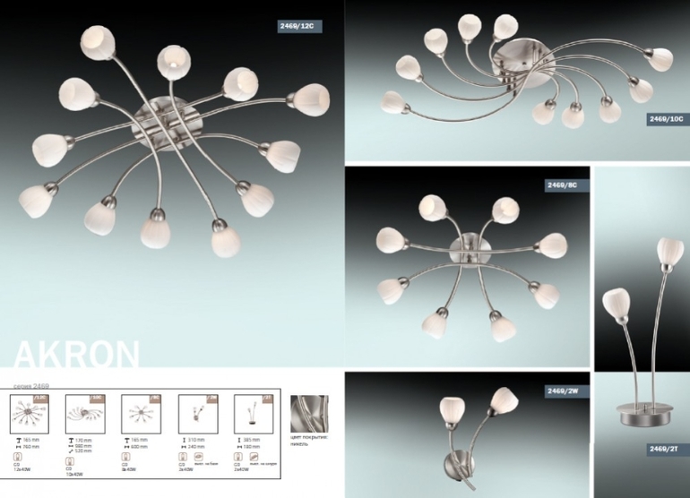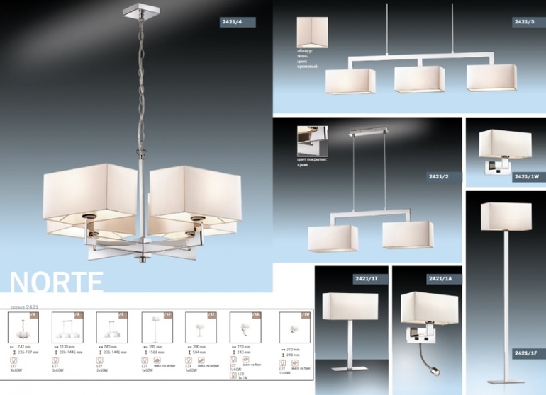 Из тех вариантов, что вы представили-для вашего интерьера больше подойдет что-то из 4 серии фотографий. Судя по изображению, люстра потолочная, поэтому такой вариант является более выигрышным для натяжного потолка, чем подвесная люстра. А что касается цветового решения, я бы рекомендовала что-нибудь более теплых оттенков-наподобие http://www.razsvet.ru/product/lustra_sl32710206/. Если найдете потолочную люстру, которая в 4-м варианте, но в более теплых тонах, это будет идеальным решением)))