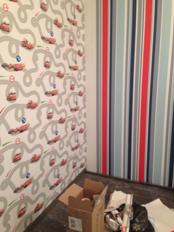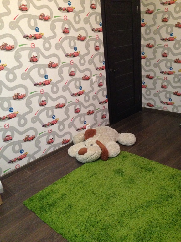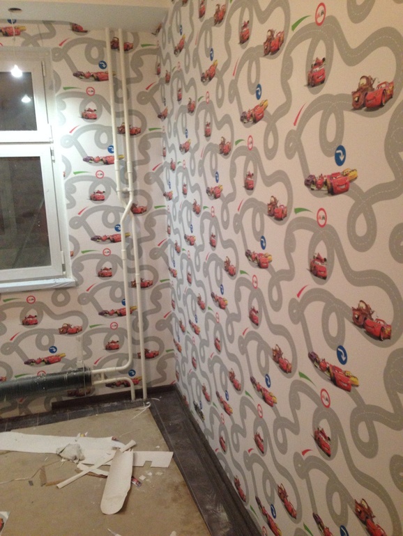 мне кажется, можно было вставку из этих с машинками обоев сделатьа полосочки — это конечно ...смело!