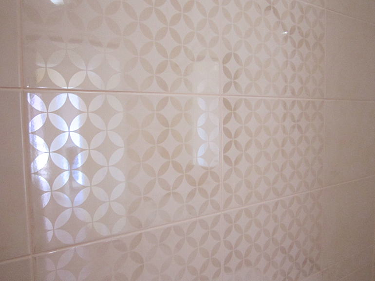 Здравствуйте) Уже давно рассматриваю такую плиточку, подскажите, пожалуйста, как в уходе та, что с орнаментом? "Зеркальный" рисунок не стирается?