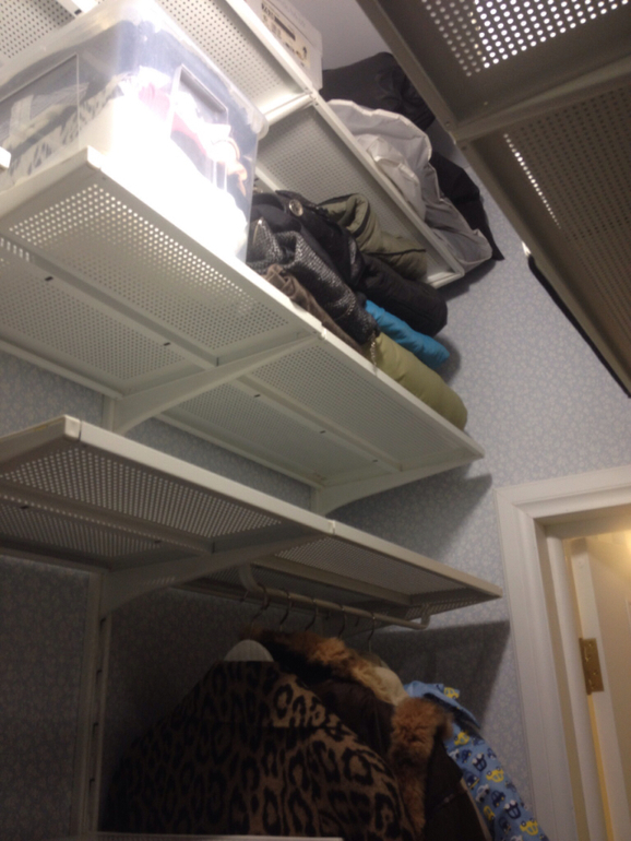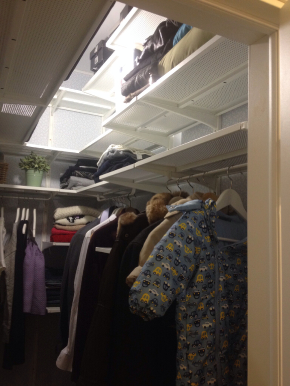 у нас тоже маленькая гардеробная — думаю еще пока, как её обустроить, на вашем примере увидела что система с корзинками и полками от Икее — это то что надо... и ощущение,что пространство не захламлено несмотря на маленькие габариты комнатушки. думаю дсп смотрелось бы не так воздушно что ли.Если не секрет во сколько вам обошлись полки все?