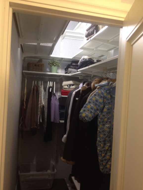 Много чего еще нужно докупить в нашу гардеробную, но показать не терпится уже сейчас) под моей вешалкой с одеждой еще будут три корзины, они уже есть сейчас, просто мы забыли купить к ним направляющие...Еще мы докупим полочек, пластиковых контейнеров, скуббов и коробок для обуви, повесим шину с корзинками. Уже на данных фото мы разместили практически все вещи (кроме детских, они в комоде), а места еще полно, что не может не радовать. Кстати, шкафа для верхней одежды у нас в прихожей тоже не будет, только крючки, поэтому сразу справа от двери мы сделали секцию для курток и пальто, шапок и сумок. В дальнейшем, возможно, часть вещей переедет в прихожую на специальные полки. В общем, вот и фото. Пока у нас вот так.