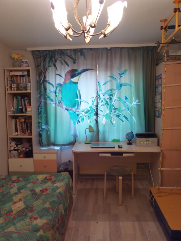 Кровать оставили пока старую, сейчас в поисках либо чердака и диванчика или 2-хъярусной. Так как детей двое мальчик 9 лет и девочка 2,5г. цвета выбирала для обоих.